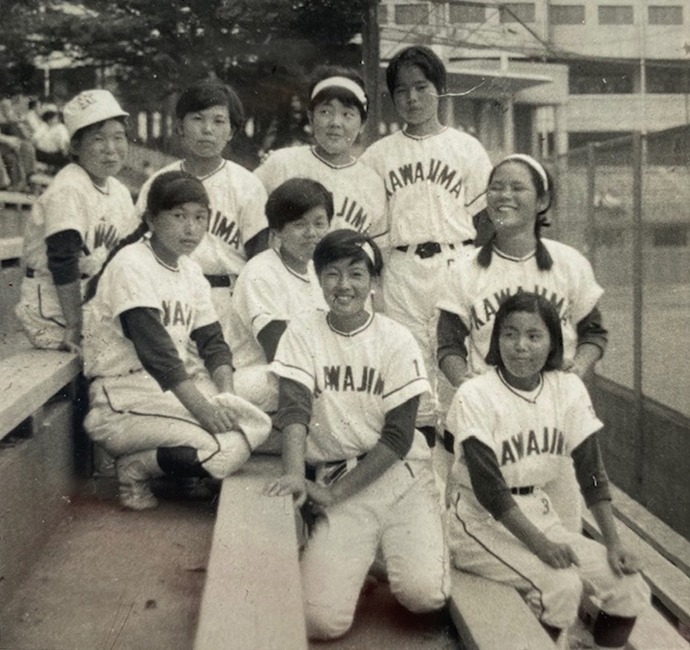 川島中学ソフトボール部時代の宇津木さん(中央右端)