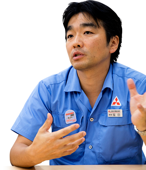現在PREMIUM 5 DAYSを新城工場の現場で指揮する塩田にとって、新城工場は自身が三菱電機入社時に研修を受けた場所であり、自分と同じ1974年生まれの施設でもある。思い入れの強い工場で塩田は「本当に大変なのはこれからの方」と気を引き締める。100%を維持し続けているPREMIUM 5 DAYSの出荷日遵守率は、1台でも遅れた時点で二度と100%には戻らなくなるからだ。