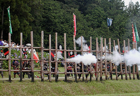 天正3(1575)年、武田軍と織田・徳川連合軍の総勢5万人超えの兵士たちが、東西の要となっていた長篠城をめぐってしのぎを削った場所です。決戦場跡地に再現されている馬防柵で古の時に思いをはせるのはいかがですか。