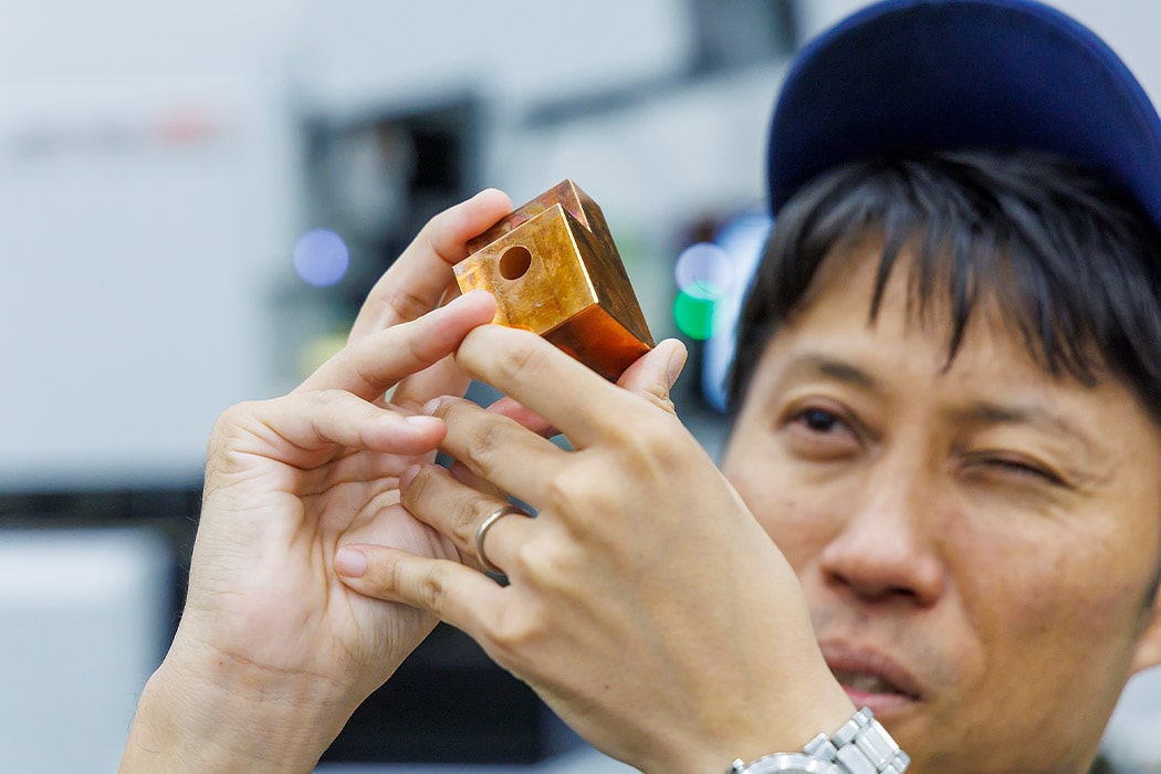 新たな素材の中でも特に難航したのは、熱伝導率が高く伸縮が著しい大きい銅だった。数ミクロン単位の制御が必要になるMaisart®ノズル離れ制御で、素材の特性による歪みという機械以外の要素を計算に入れるのは難しい。しかし数え切れないほどのチューニングと試作を繰り返した結果、最終的には銅だけでなく、多くのユーザーから要望のある超硬やアルミにまで拡大することに成功した。速度という制約から解放され、Maisart®ノズル離れ制御はようやく本領発揮となったのだ。