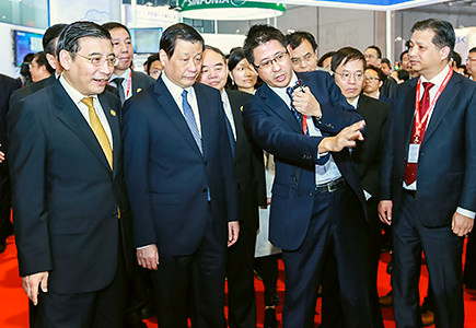 それらが並べられた三菱電機のブースが周りから大きな注目を集めた出来事が、会期初日にありました。上海市の市長をはじめとした多くの行政や業界の首脳が、開幕に先立ち三菱電機ブースを訪れたのです。