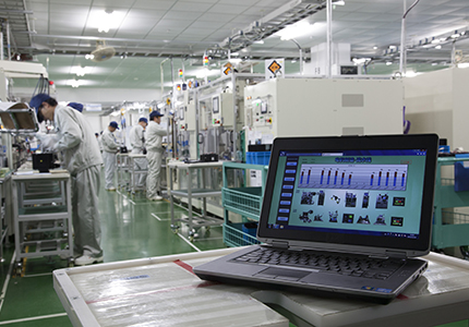 また消費エネルギーを生産量と突き合わせ、エネルギー原単位の変化をリアルタイムで管理し、ムダなエネルギー利用の発見や、ムダ削減のための温湿度の自動制御なども行っています。MEAMCではこの先進的な見える化で智能製造を具体化した実稼働中のラインを、見学者に公開しています。