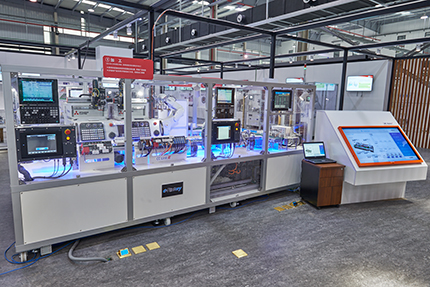 一つは、常熟市の常熟高新技術産業開発区に2017年7月に開設された「常熟グリーン智能製造技術イノベーションセンター」内のモデルラインです。智能製造推進の中核拠点と位置付けられているこのセンターには、関連ベンダー各社のシステムが展示されていますが、その中で最大の展示スペースを持っているのが三菱電機です。ここではスマートフォンの製造工程を模したモデルラインや、複雑な制御が求められるコンバーティングやバリ取りのデモシステムを展示しています。
