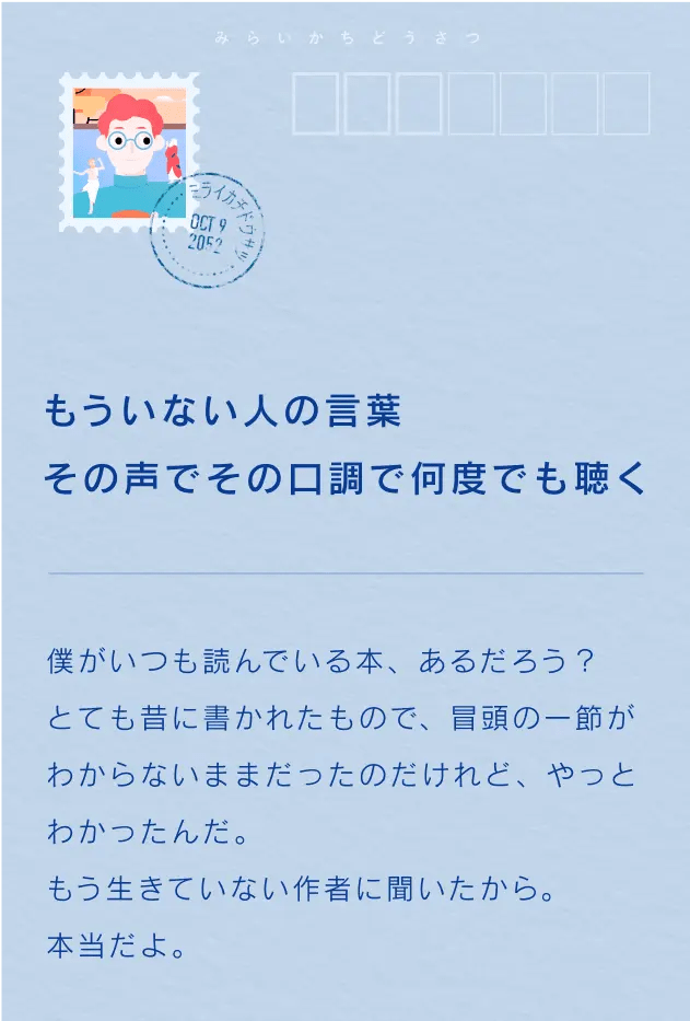 複雑性を増し続けた世界の社会課題の解決に、引退世代や故人の知識・知恵などのアーカイブデータが活用される。