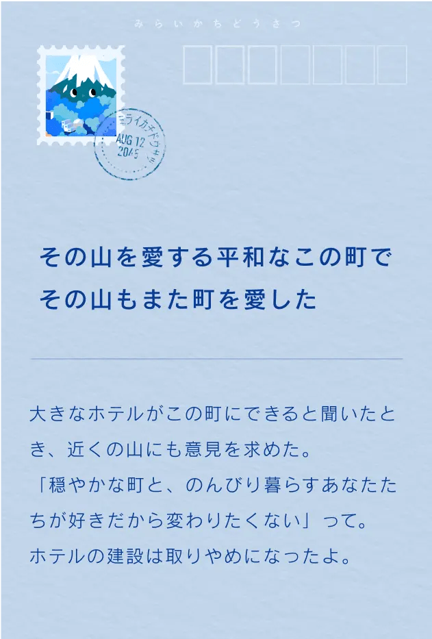 ここから気づきを得ることで、今は見えないがやがて大切になる未来の価値を創出し、より良い未来を考える手掛かりとしています。
