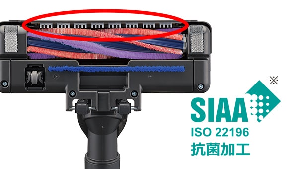 ※無機抗菌剤、練り込み、本体ハンドル部。無機抗菌剤、練り込み、ホースハンドル部。無機抗菌剤、練り込み、ブラシ部回転ブラシ樹脂部。無機抗菌剤、練り込み、ブラシ部 プレート。無機抗菌剤、練り込み、本体コード巻き込みボタン。JP0122075X0086M。SIAAマークはISO22196法により評価された結果に基づき、抗菌製品技術協議会ガイドラインで品質管理・情報公開された製品に表示されています。試験機関:(一財)ボーケン品質評価機構、試験方法:JIS Z 2801に基づく、抗菌方式:抗菌材(本体ハンドル部)、試験結果:99%以上。試験機関:(一財)カケンテストセンター、試験方法:JIS Z 2801に基づく、抗菌方式:抗菌材(ホースハンドル部)、試験結果:99%以上。試験機関:(一財)ボーケン品質評価機構、試験方法:JIS Z 2801に基づく、抗菌方式:抗菌材(ブラシ部回転ブラシ樹脂部)、試験結果:99%以上。試験機関:(一財)ボーケン品質評価機構、試験方法:JIS Z 2801に基づく、抗菌方式:抗菌材(ブラシ部 プレート)、試験結果:99%以上。試験機関:(一財)ボーケン品質評価機構、試験方法:JIS Z 2801に基づく、抗菌方式:抗菌材(本体コード巻き込みボタン)、試験結果:99%以上。
