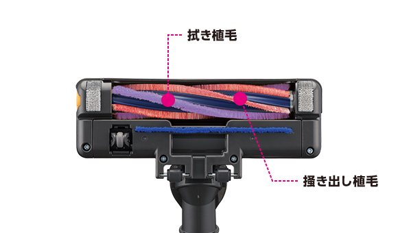 様々な床面のゴミもしっかり吸い取る2種類の植毛