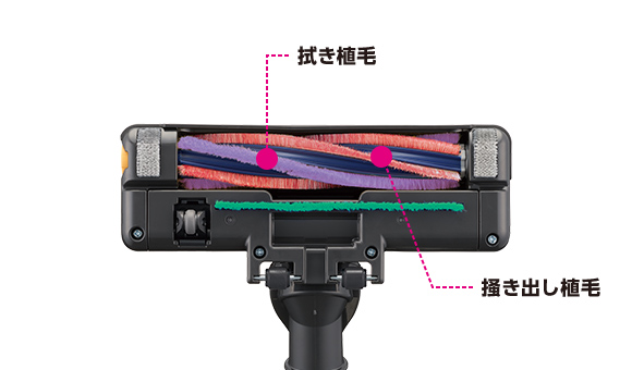 様々な床面のゴミもしっかり吸い取る2種類の植毛