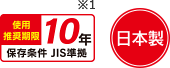 ※1JISに規定されている負荷を掛けた際の持続時間の性能を満足する期間です。