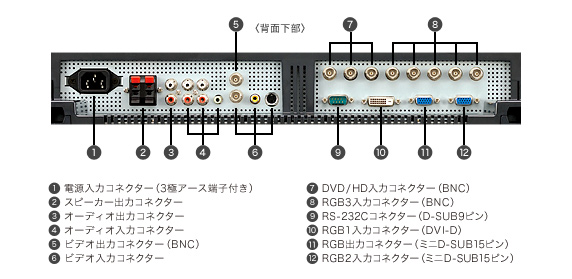 | アナログ | コンポジットビデオ<BNC、RCA端子>、S端子、コンポーネント<BNC×3> | ||