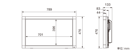 | 質量/寸法 | ディスプレイ本体 | 約14.5kg/789(W)×476.3(H)×133(D)mm | |