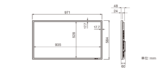 | 質量/寸法 | ディスプレイ本体 | 約15.0kg/971(W)×564(H)×48*/60(D)mm *付属のオプションカバー不使用時 |