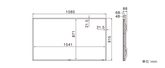 | 質量/寸法 | ディスプレイ本体 | 約45.8kg/1585(W)×915(H)×68※10/88(D)mm | |