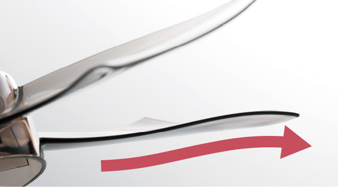風上側へなめらかに湾曲した先端部で、低騒音化を実現。