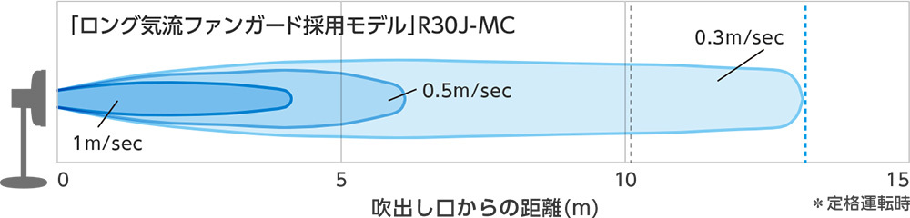 風速アップ効果のあるロング気流ファンガード採用で、より到達距離の長い風を実現。お部屋の空気をいっそう効率よく循環できるので、ぜひ夏冬の冷暖房効率の向上にかしこくお役立てください。