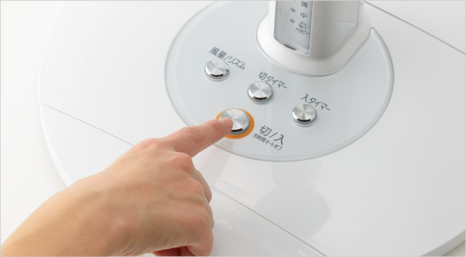 設定時間を選べ、眠りにつくまで徐々に風量を弱めていきます。