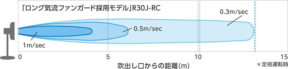 風速アップ効果のあるロング気流ファンガード採用で、より到達距離の長い風を実現。お部屋の空気をいっそう効率よく循環できるので、ぜひ夏冬の冷暖房効率の向上にかしこくお役立てください。