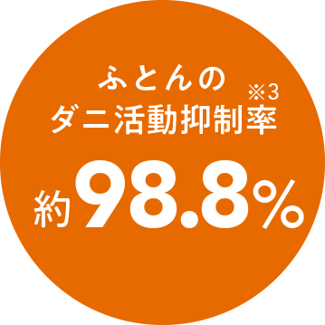 ※3〈試験機関〉環境アレルゲンinfo and care株式会社〈試験方法〉生きたヒョウダニをシートに入れ、ふとん内27カ所に埋め込み、ダニパンチコースでふとん表裏の計2回運転した後のシート内の動かなくなったダニの個体数を測定。〈試験結果〉抑制率98.8%。 人体へ影響を与えるものではありません。