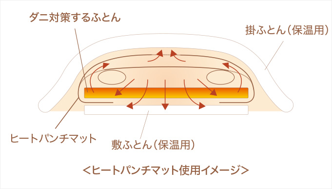 中綿までしっかりと熱が伝わりふとんのダニの活動を抑制※3。
