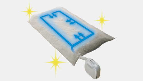 寒い夜にふとんをあたためたい時は、ふとんにホースを差し込むだけ。