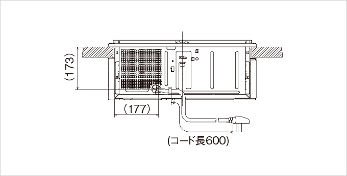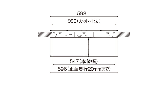 ※据付の際、前面より奥行20mmまでは600mm幅の空間が必要です。