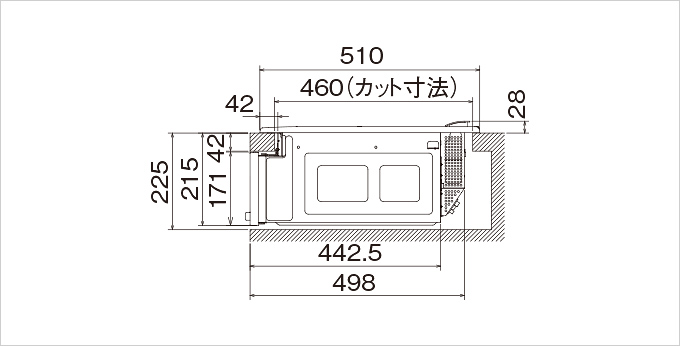 | 引き出し | 庫内有効寸法(幅×奥行×高さ) | 引き出し内寸法 217×382×60mm | |