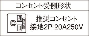 電源は必ず漏電しゃ断器を設けたブレーカー付きの専用回路を設置してください(コンセントは専用の接地2P 20A250Vをお使いください)。
