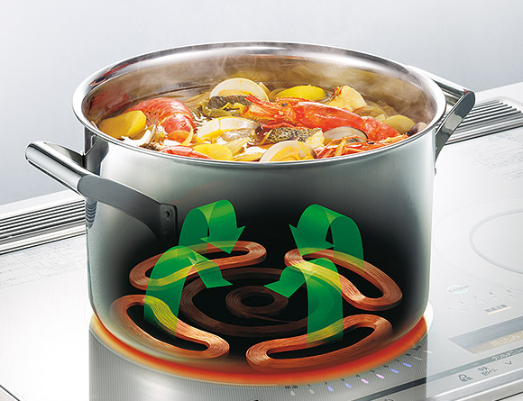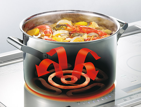 ※2小さい鍋を加熱しているときは、外向対流で火力の強さを切り替えています。