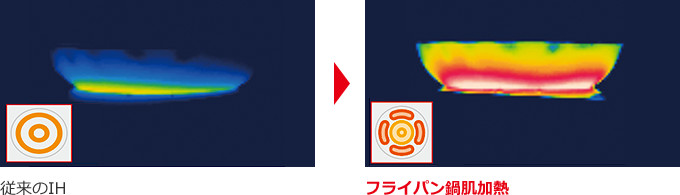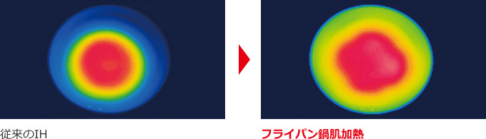 すみずみまでムラを抑えて、おいしく加熱。「フライパン鍋肌加熱」