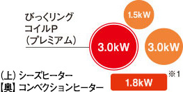 | びっくリング加熱 | 対流煮込み加熱 | ●左IH〈プラス〉(5段階) | |||