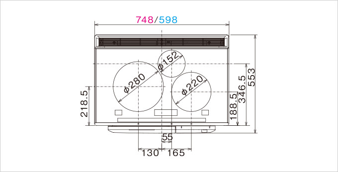 | 寸法・質量 | 本体 | 外形寸法(幅×奥行×高さ) | 748×553×231mm | 598×553×231mm | |