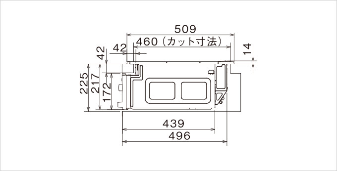 | グリル | 庫内有効寸法(幅×奥行×高さ)※6 | 281×361×60(オーブンネットなしのときは90)mm | |||