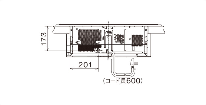 ※据付の際、前面より奥行20mmまでは600mm幅の空間が必要です。