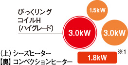 | びっくリング加熱 | 対流煮込み加熱 | ●左IH(5段階) | |||