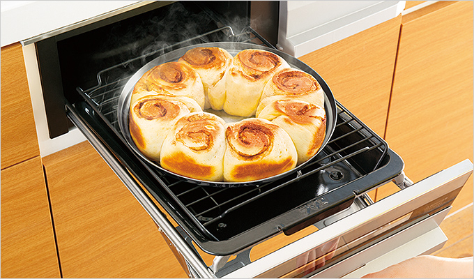 2枚1セットのグリルディッシュを組み合わせて、パン焼きから炊飯、お菓子まで簡単においしく作れます。