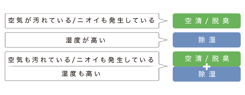 実使用環境下での効果とは異なります。常時発生し続けるニオイ成分(建材臭・ペット臭等)は全て除去できるわけではありません。