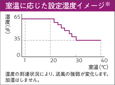 室温による設定湿度は「体感暑さ指数(WBGT)」などの指標から当社独自に設定しています。