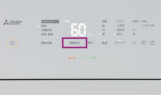 わかりやすく使いやすい操作パネルで簡単に湿度設定(相対湿度50・55・60・65・70%)ができます。