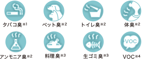 ※2アンモニア:<試験方法>日本電機工業会規格(JEM1467)に基づき試験 <試験結果>除去率99%。