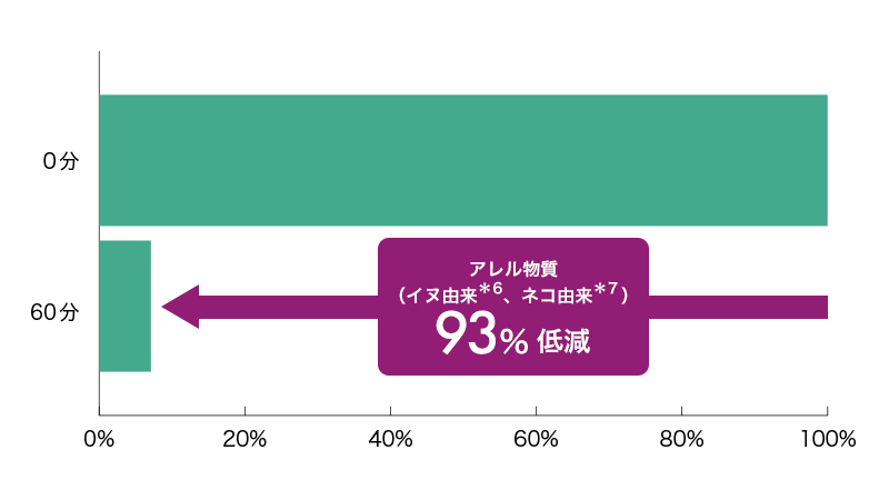 空気中に浮遊しているイヌ*6やネコ*7由来のアレル物質もしっかり除去できるため、ペットとも快適に生活できます。