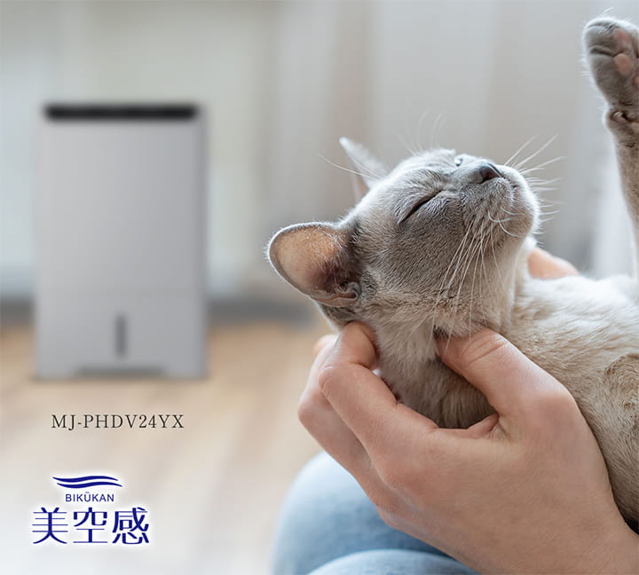 そんな空気清浄機能はもちろん、高い脱臭機能も兼ね備えた除湿機「美空感」は、ペットのすこやかな暮らしづくりを多角的にサポートする、まさにオールインワンの空間ケアアイテムだと思います。