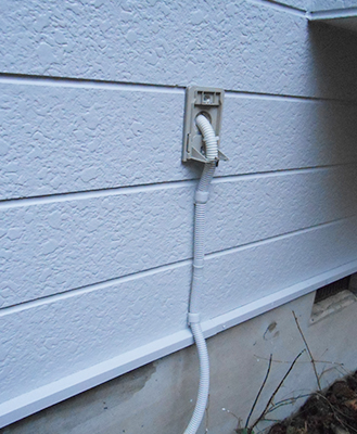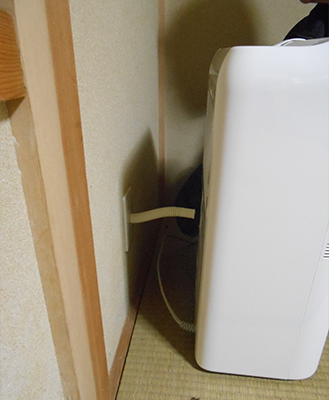 除湿機はタンクの水を捨てなければいけないですが、三菱電機の衣類乾燥除湿機は市販のホースをつないで、ホースから出る水の場所を確保すれば連続除湿できるので便利です。
