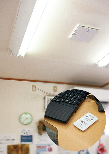 導入の決め手となったのは、循環ファンが天井設置だという点です。「床から」と「天井から」という二重の清浄効果で高い安心感が得られると思い、神奈川県の補助金も活用しながら、循環ファンを導入すると同時に換気扇も更新しました。