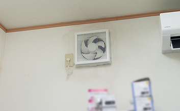 - 調剤室の標準換気扇。羽根操作部は抗菌仕様
