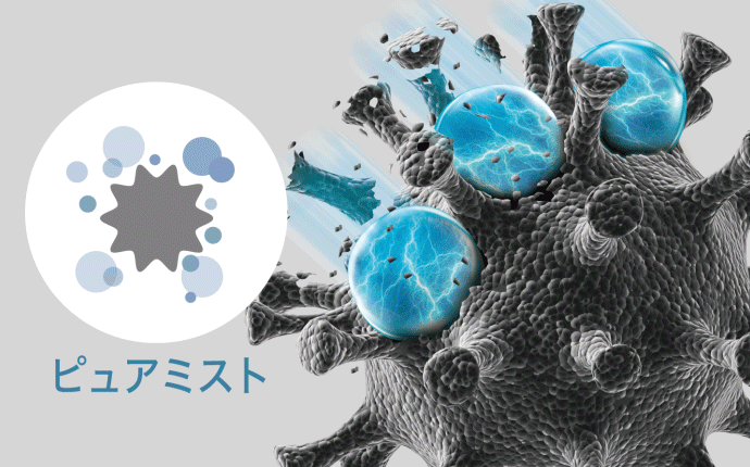 電気を帯びたナノレベルの水のミストが、有害物質の活動を抑制し、さらに脱臭も。お部屋の空気をキレイに。