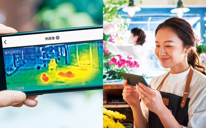 赤外線センサーでお部屋や人の温度を測り、独自のバイタルセンサーで気持ちまで測って快適に。