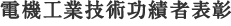「電機工業技術功績者表彰」は、一般社団法人 日本電機工業会が技術の向上と合理化意欲を刺激して業界の発展に資するため、重電部門、家電部門、ものづくり部門、IoT・AI・DX部門の各部門において、新製品・新技術開発などによって優れた成果を挙げ、電機工業の進歩発展に貢献した方々を表彰するもので、1952年以来、毎年1回実施しています。2004年度(第53回)からは、一般社団法人 日本電機工業会の委員会活動に対する成果に対しても表彰しています。
