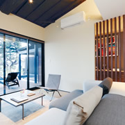 今回の「スタジアムハウス」を作り上げるにあたり、「このエアコンが良いね!是非とも使いたい!」と思い設置をさせてもらいました。FLシリーズのボルドーレッドは「赤色」なのですが、色もきつ過ぎず、光によって深みや変化のある「赤色」というところが良いですね!モデルハウスに来場されるお客さまの反応も上々で、色のほかにも「かっこ良い!」「インテリアの一部になっている!」というお声もいただきます。他と差をつけたい、個性のあるお部屋にしたいという施主様にしっかりご提案できるエアコンだと思います。
