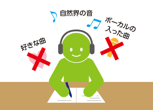 集中したいときは、ボーカルの入った曲は避けましょう。脳の言語中枢は、基本的に一つの作業しかできません。曲の歌詞を言語中枢で認識すると、その分だけ、脳の情報処理がおろそかになります。