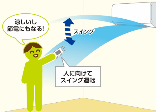 エアコンを人にむけてスイング運転することで、体感温度を下げることができます。
